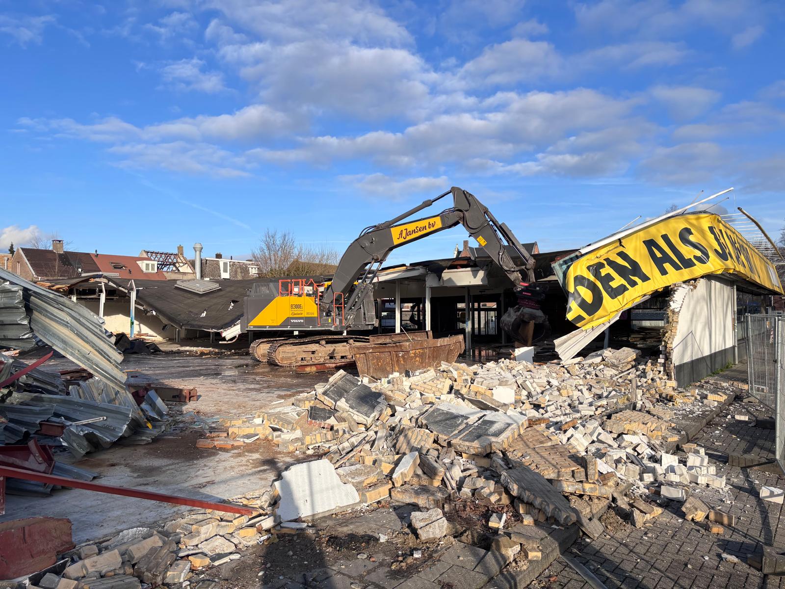De sloop de supermarkt en panden aan de Hoogstraat is gestart en duurt naar verwachting vier tot vijf weken. Na de sloop volgt een bodemsanering onder archeologische begeleiding. Zodra deze werkzaamheden zijn afgerond en het terrein is vrijgegeven, start de nieuwbouw van de nieuwe Jumbo-supermarkt.
